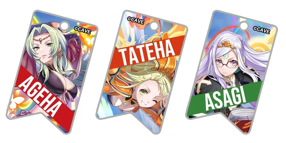 | アクリルガーランドチャーム(3個セット) ① | 『エスプガルーダII』キャラクター:アゲハ・タテハ・アサギの3種が1セット | 約20mm×34mm以内(各チャーム) | 透明アクリル板(厚さ2mm) | 3,300円(税込) |