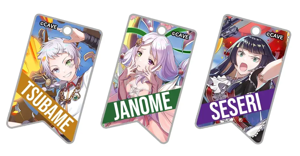| アクリルガーランドチャーム(3個セット) ② | 『エスプガルーダII』キャラクター:ツバメ・ジャノメ・セセリの3種が1セット | 約20mm×34mm以内(各チャーム) | 透明アクリル板(厚さ2mm) | 3,300円(税込) |