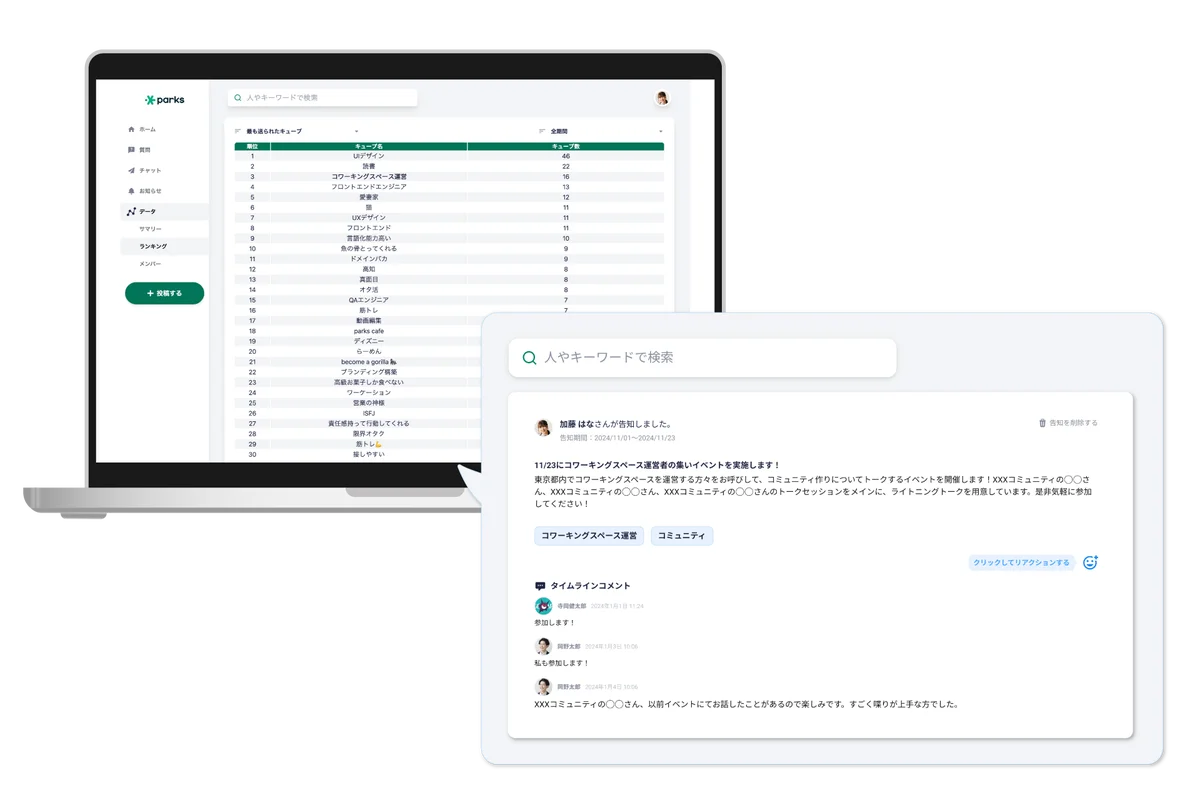 導入検討に至った背景には、拠点利用の活性化と会員間マッチングの質の向上という二つのニーズが明確に存在していました。これらの課題に対してparksはどのような解決策を提供するのか、以下で機能と期待効果を詳細に整理します。