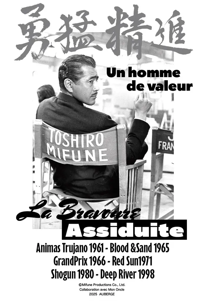 本プロジェクトは、黒澤明作品とともに戦後の映画史を象徴する存在であり、生誕105年を迎えた三船敏郎にオマージュを捧げる試みとして企画され、ジャパンデニムを用いたジーンズ2種類と、映画の美学を取り込んだTシャツが受注生産で制作されます。AUBERGEは国内の産地でつくり込んだ素材と、映画・音楽などのサブカルチャー理解を背景にラグジュアリーカジュアルを提案するブランドです。
