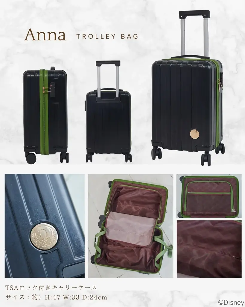 - HAPPY BAG(5点セット):価格 ¥7,700(税込)。キャリーケースを含む5点セットで、「アナ」「エルサ」「アリエル」「シンデレラ」「ラプンツェル」をイメージしたデザイン展開です。旅行やお出かけで使用することでキャラクターの世界観を持ち運べる仕様となっています。