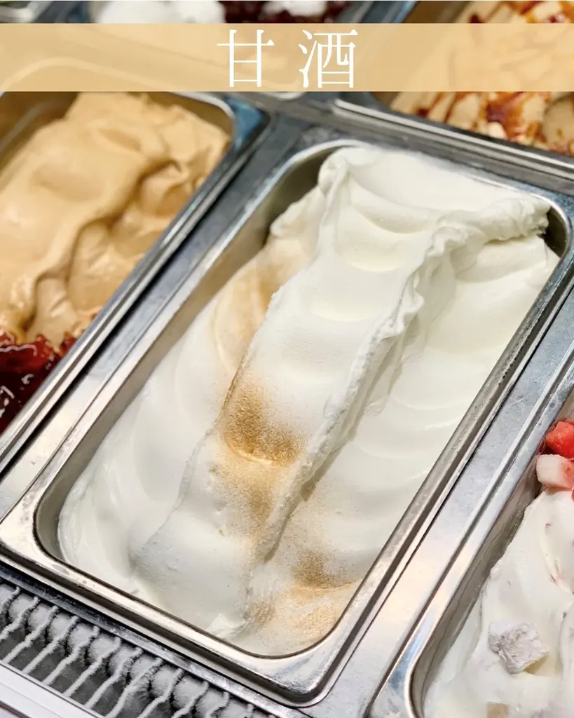 - 甘酒:八海山の酒粕をたっぷり使用した甘酒味のジェラート。冬期の定番として人気の高い一品。