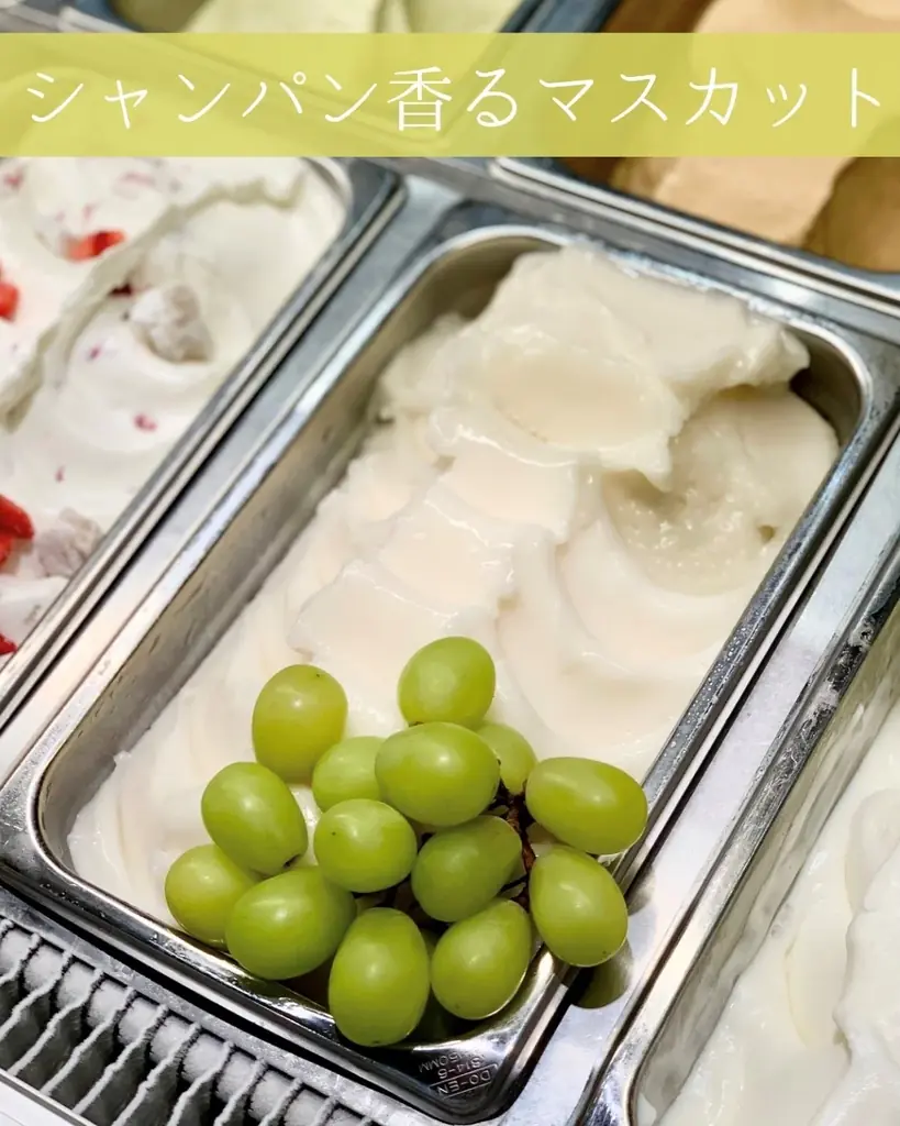- シャンパン香るマスカット:フランス産シャンパンの香りが鼻に抜けるマスカットのジェラートで、大人向けの風味設計。