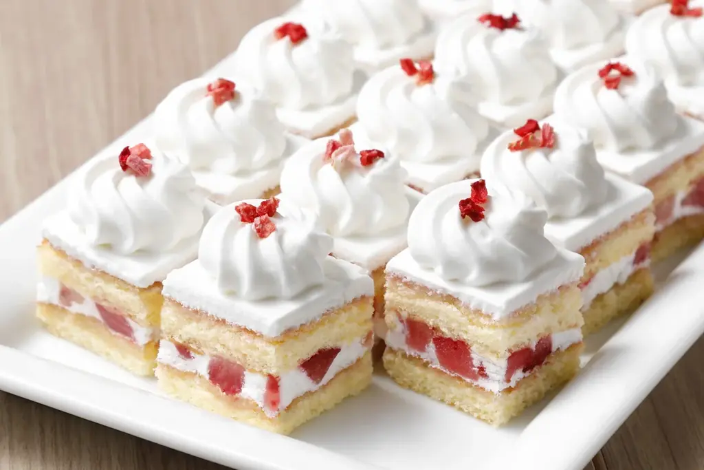 - 苺のショートケーキ:ジェノワーズと生クリーム、甘酸っぱい苺を合わせた定番のアレンジ。