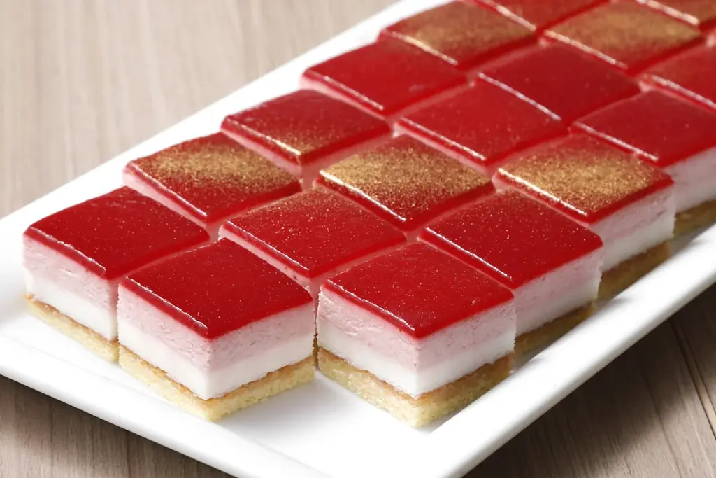 - いちごとホワイトチョコ:いちごムースと濃厚なホワイトチョコムース、彩りのいちごジュレを重ねたムースケーキ。