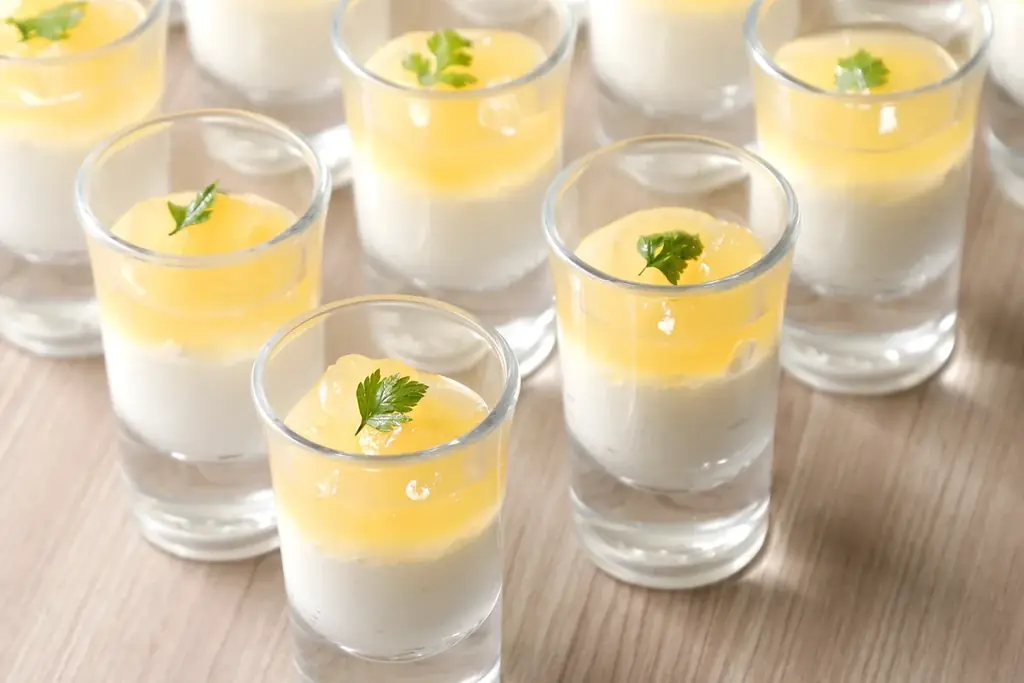- ごろごろ林檎のレアチーズ:クリームチーズベースのクリームにリンゴがたっぷり入るグラスデザート。