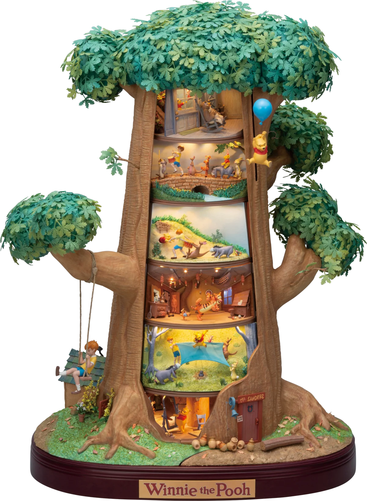風船を手にしたプーは右上に配置され、モーター仕掛けのギミックで上下に動きます。
