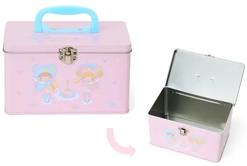 持ち手付きの缶ケース。サイズ:幅約19.3cm×高さ約15.3cm。 - シール:550円。