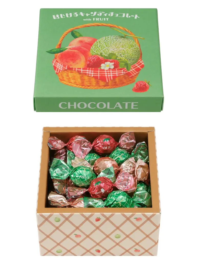 | はじけるキャンディチョコレート with FRUIT(メロン) | 6個入 | 550円 | メロン風味のチョコレートにパチパチキャンディを配合 |