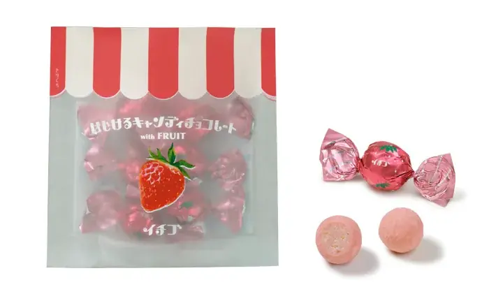 | はじけるキャンディチョコレート with FRUIT(イチゴ) | 6個入 | 550円 | イチゴ風味のチョコレートにパチパチキャンディを配合 |