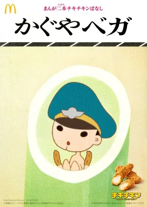 マクドナルド公式Xの投稿では、伝統的な昔話のタイトルや登場人物(例:桃太郎、鶴の恩返し、かちかち山、かぐや姫)を、ストリートファイターの人気キャラクターを意識した表現に差し替える形で紹介しています。具体的には「ベガ太郎」「ベガの恩返し」「ベガベガ山」「かぐやベガ」といったタイトル表記が用いられ、投稿内でのアレンジはCAPCOMの著作権表示(©︎CAPCOM)も記載される形になっています。