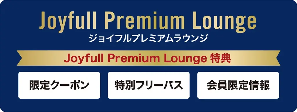 今回導入された「ジョイフルプレミアムラウンジ」は、スタンプカードが有効期限内にプラチナカード以上へ到達した会員が、到達日から次の1年間入室可能な特別エリアです。ラウンジでは会員限定の情報配信やクーポン配布、特典が用意されます。
