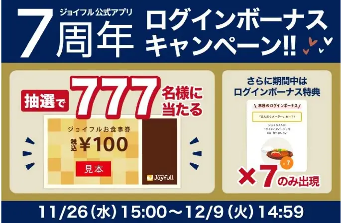 | キャンペーン開始日時(同日) | 2025年11月26日(水)15時から7周年記念キャンペーン開始 |