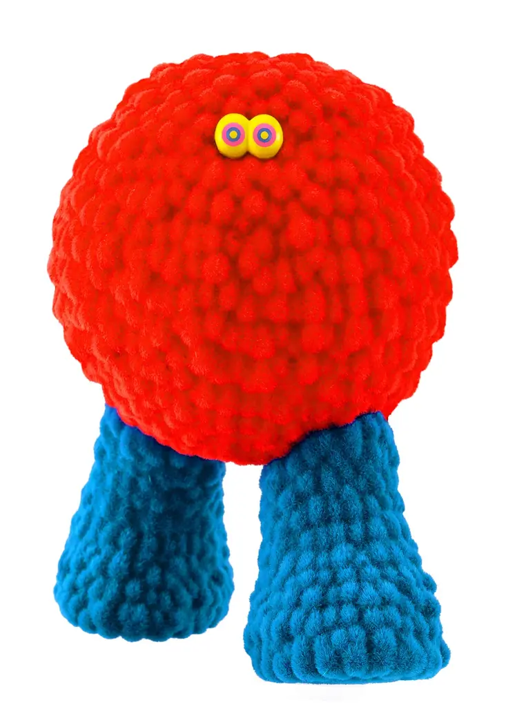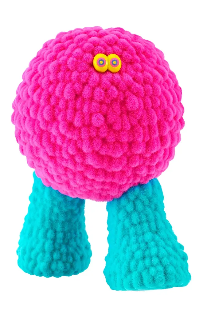 フジサキタクマ氏が創り出す「モール」表現は、カラフルな長い毛足と、そこからのぞく独特の視線や表情が特徴です。中でも「モールエイリアン」は、モール素材で表現されたキャラクターとして人気を博してきました。