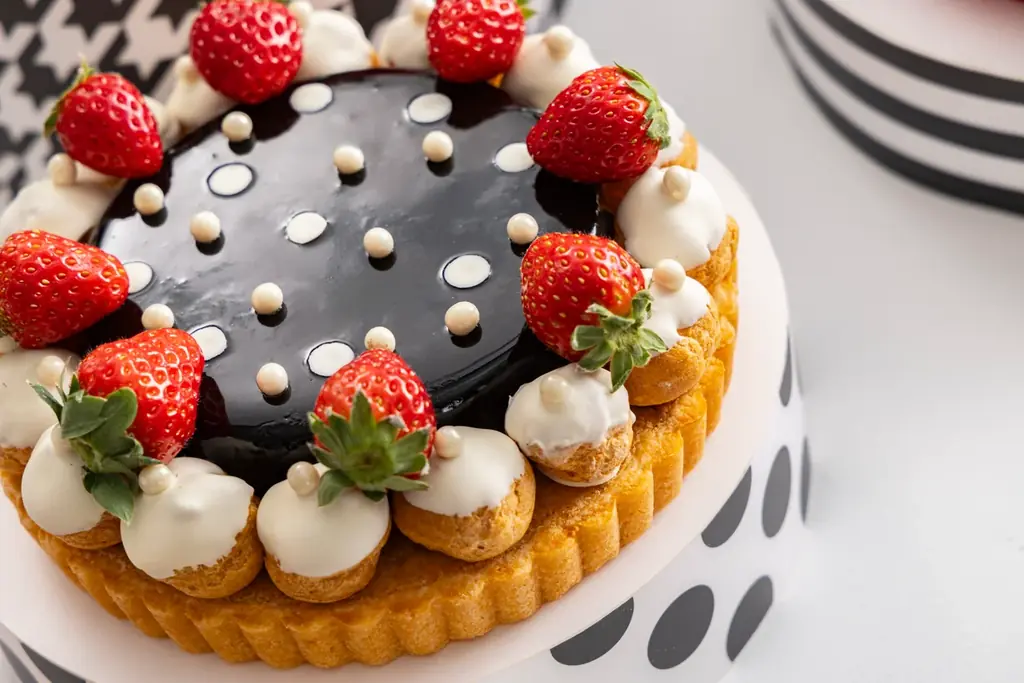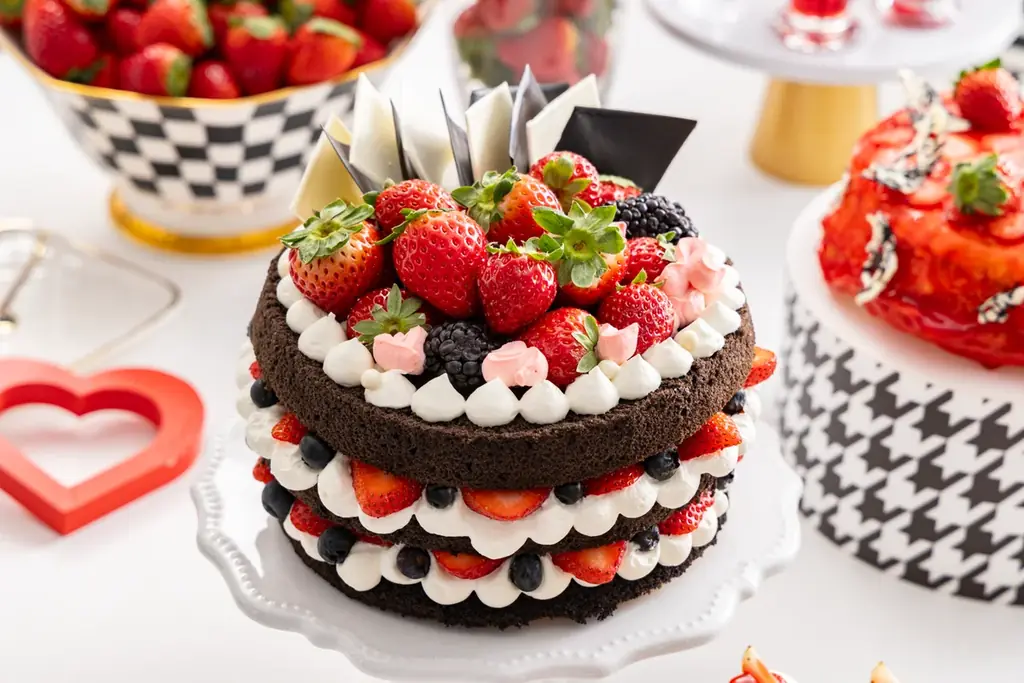 • ストロベリー・ブラックドレス:ココアスポンジにコーヒーシロップを含ませ、マスカルポーネクリームと苺、ブルーベリー、ブラックベリーを重ねたティラミス風のオープンサンドケーキ。苺とほんのり苦みのあるコーヒーが重なる上品な味わい。