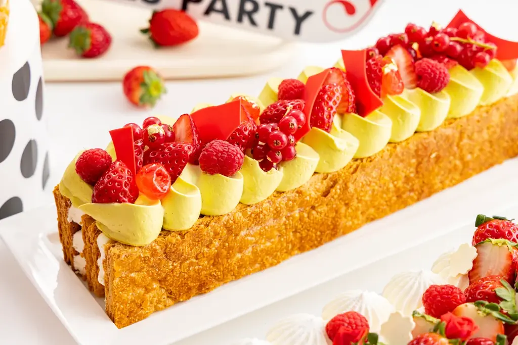 • ベリーベリークラッチ:サクサクのパイにピスタチオクリームを絞り、苺とラズベリーをあしらった一品。ナッティーなピスタチオが苺の甘酸っぱさを引き立てる。