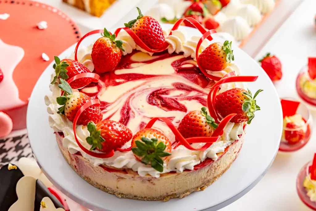 王道の苺タルトやショートケーキから、ピスタチオクリームを用いたパイ、マーブル模様のチーズケーキまで、素材や風味のバランスに配慮した構成です。苺の酸味を活かすクリームやコンフィチュールを組み合わせ、口当たりと余韻に工夫が施されています。