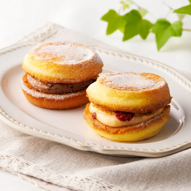 - 特徴:クリームチーズを練り込んだしっとり生地に2種類のクリームをサンド(チェダー&クランベリー/チョコレート)