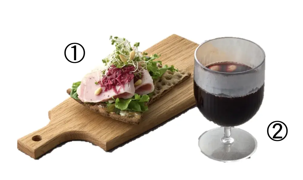 スウェーデンの国民食ともいえるクラッカーをクリスマス風にアレンジした出品です。全粒粉クラッカーにハム、ミックスリーフ、赤キャベツピクルス、イチジクジャムなどをトッピングし、会場ではホットワインと合わせて楽しめるメニューが用意されています。