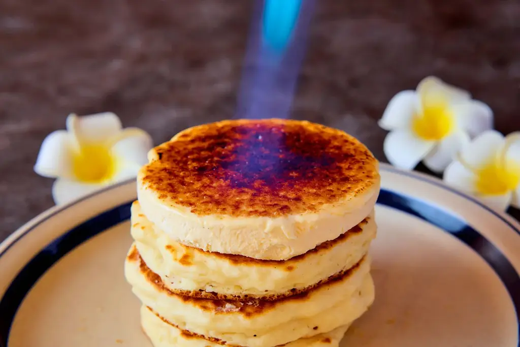| クラシックブリュレパンケーキ | 1,580円 | 1,738円 | クレームブリュレ(ホイップ入り)を最上段にのせ、表面をバーナーで炙る。パンケーキ3枚・カラメルソース・バニラアイス添え。 |