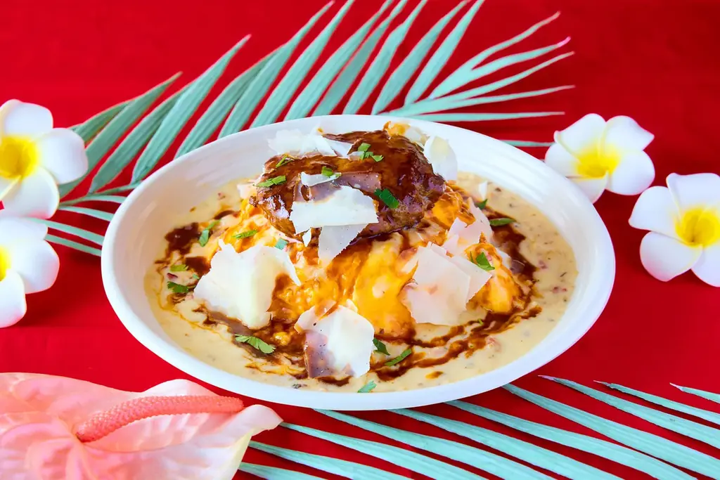 | チーズホワイトポルチーニロコモコ | 1,980円 | 2,178円 | 粗挽き牛肉100%ハンバーグ、ふわふわオムレツ、チェダーチーズ、粗めカットのポルチーニ入りクリームソース。 |