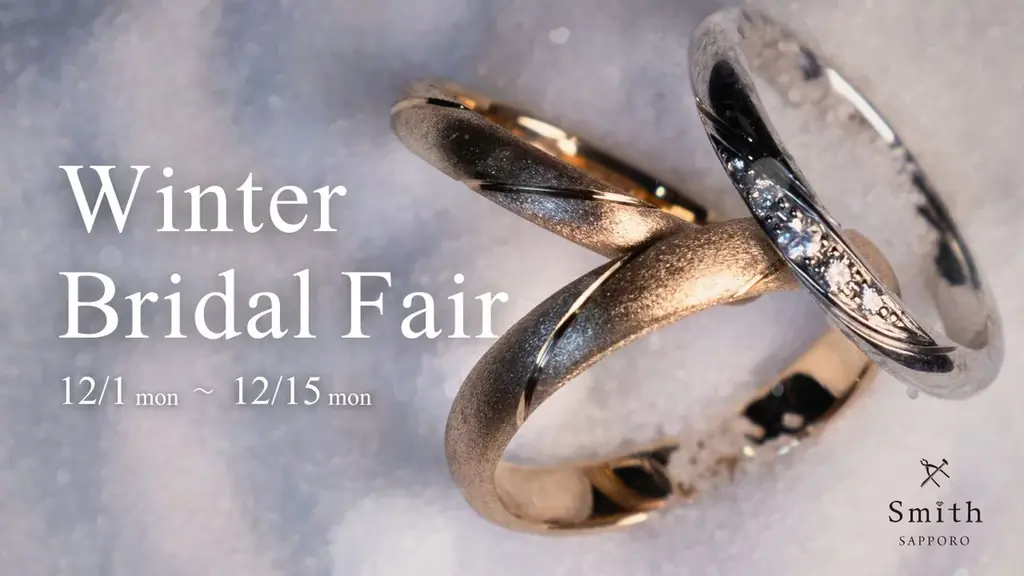 工房Smith札幌本店は、株式会社一宝が運営する手作り結婚指輪・婚約指輪の専門店です。2025年12月1日(月)から12月15日(月)までの期間限定で、冬季のブライダルシーズンに合わせた『Winter Bridal Fair』を開催します。