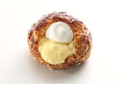 - トライアルPB「おいしくなれ!」 カスタード&ホイップシュー:213円(税込)。クッキー生地に2種の砂糖をトッピングしたザクザク食感、2層のクリームがたっぷり。