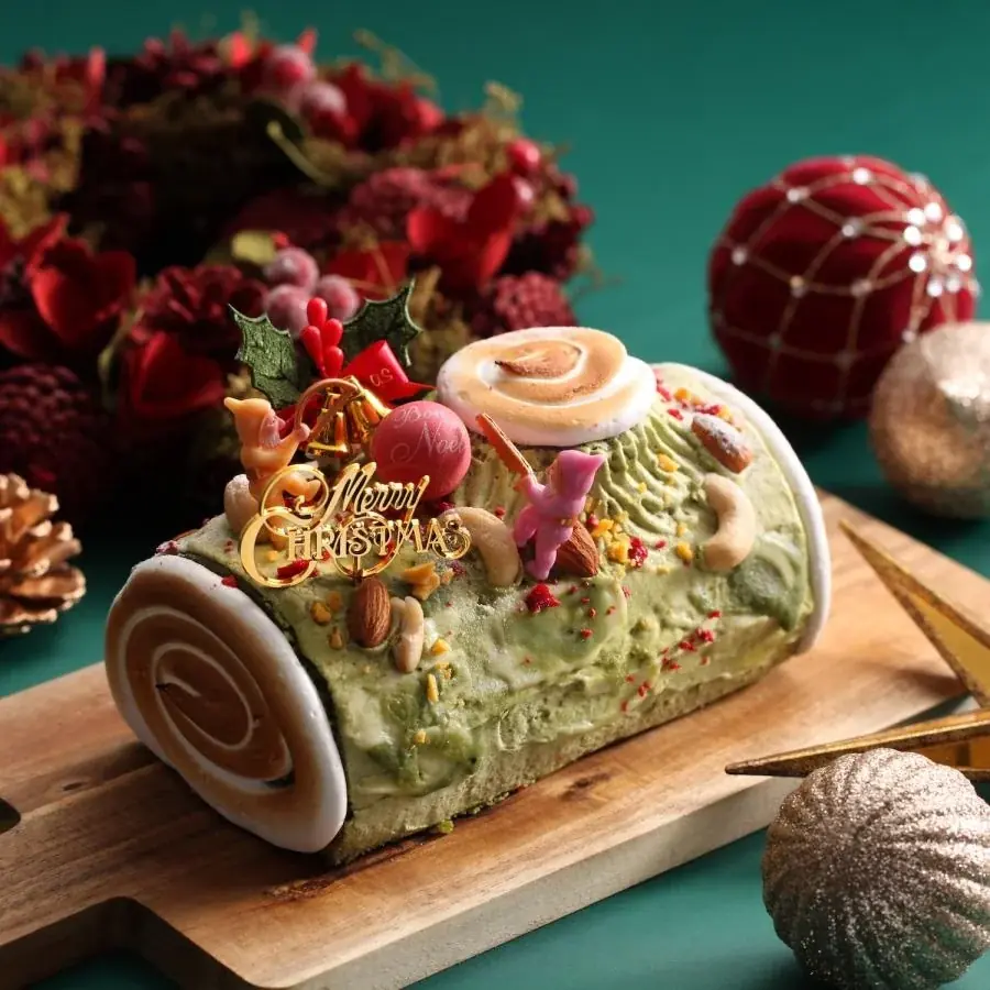 | 抹茶のブッシュドノエル | 抹茶ロール生地と豆乳バターの抹茶クリームで仕上げた和風アレンジ | 西洋菓子カトルフィユ Yahoo!店 | https://store.shopping.yahoo.co.jp/quatre-feuille/bushdenoel-matcha19.html |