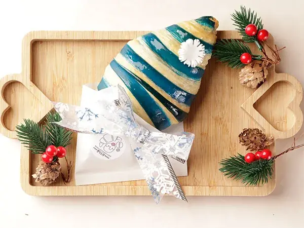 特に注目されるのは、店の一番人気であるリボンクロワッサンのクリスマスバージョンです。緑と赤の配色を用いたスペシャルバージョンは、見た目のインパクトが強く、季節感を演出します。