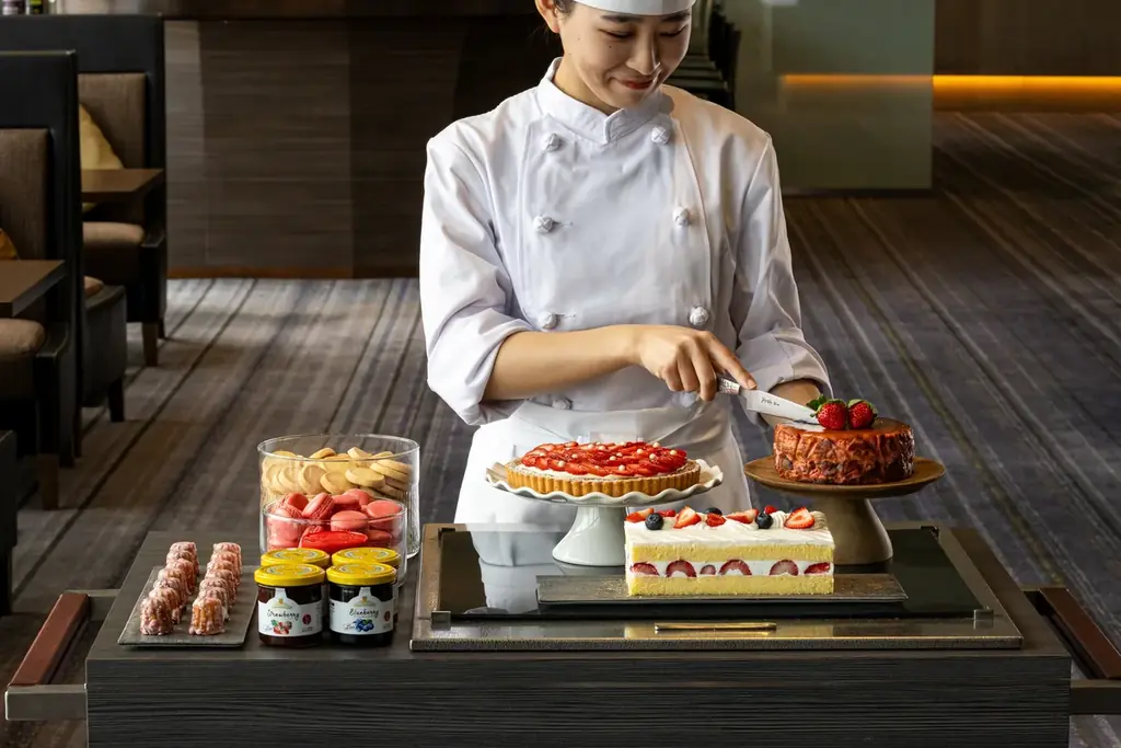 - 第三部のスイーツワゴン6種:レモンいちごタルト/いちごバスクチーズケーキ/いちごのショートケーキ/マカロン/クッキー/カヌレ。お好きなものをお好きなだけ選べます。