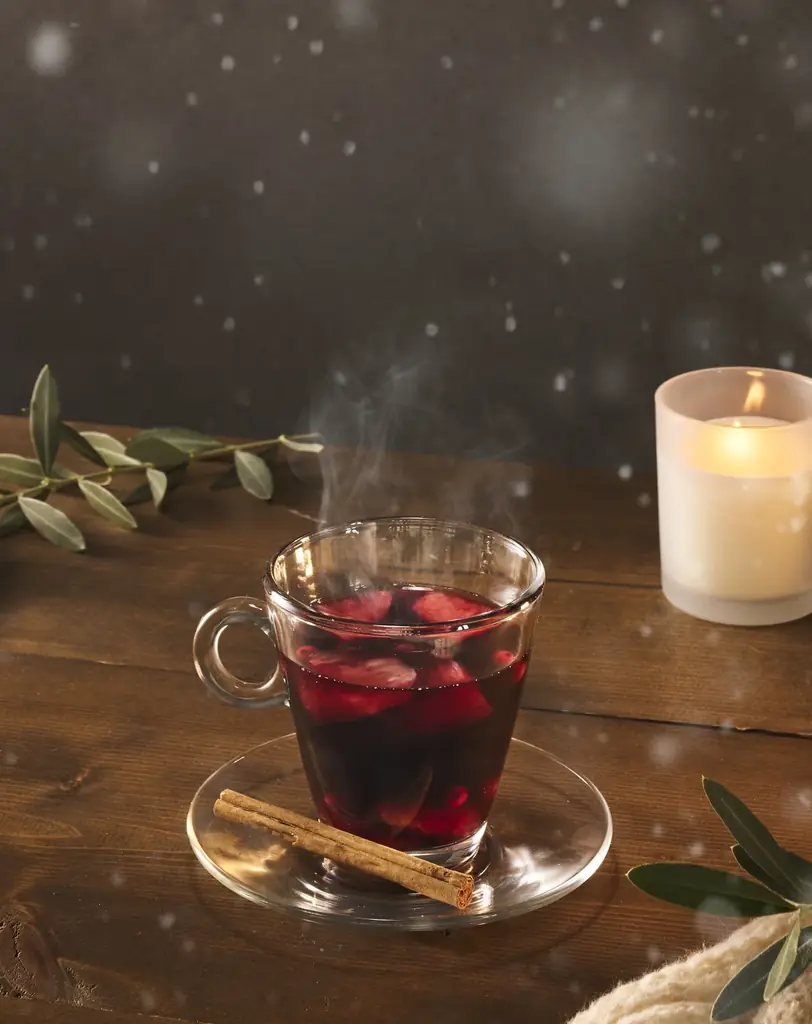 ホットサングリア 販売価格:800円(税込)/ノンアルコール(果汁100%ぶどうジュース使用)/具材:柑橘・ベリー、香りづけにシナモンスティック(食用不可)