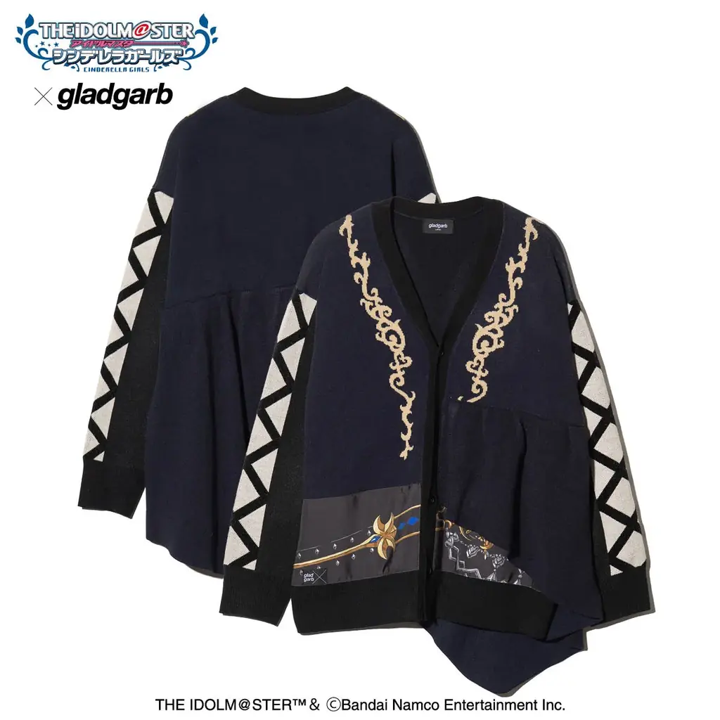gladgarbは2024年にglambとバンダイが共同で立ち上げたプロジェクトで、スクリーンやディスプレイの中で表現されるコスチュームや意匠を、ストリートフレンドリーなリアルクローズとして再構築することを目的としています。今回フィーチャーされたのは高垣 楓と速水 奏によるユニット「ミステリアスアイズ」。両キャラクターの衣装に見える意匠を、ニットのジャガード編みやアロハ柄のプリント、刺繍などを用いてストリートファッションの作法に落とし込み、計6型のラインナップでトータルスタイリングを提案します。