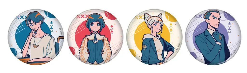 直径57mmの缶バッジは全4種で、ブリキ素材のスタンダードな仕様です。コレクション性が高く、複数並べて保管・飾ることが想定されています。