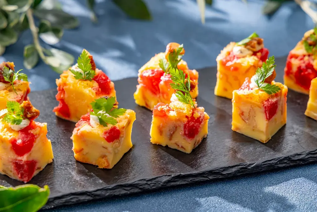 - リンゴの赤ワイン煮とシェーブルチーズのクラフティ(前菜アレンジ)
