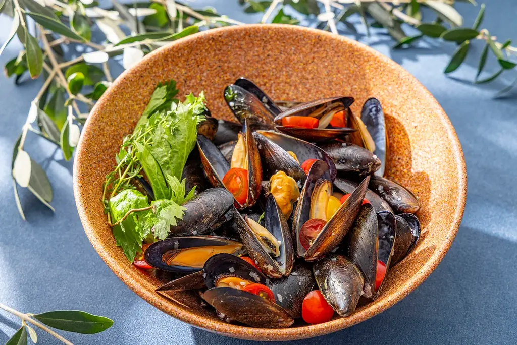 - ムールマリニエール(ニンニク、ハーブ、白ワインで蒸し上げたムール貝)