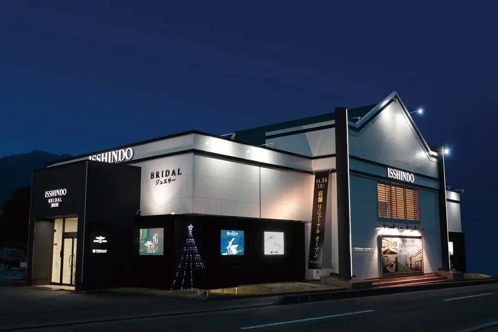一真堂は「ビジュ・ド・ファミーユ」を理念に掲げ、65年以上にわたりブライダルジュエリーと高級時計の販売に携わってきました。取り扱うブランドは40ブランド、常時4,000本以上のブライダルリングを揃えるセレクトショップとしての側面を持ちます。