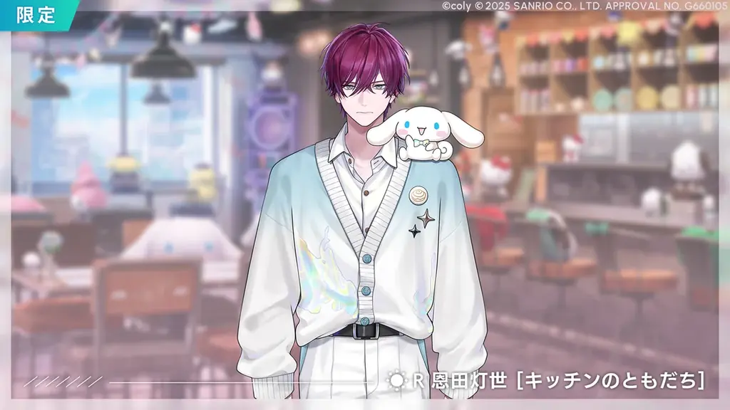 | コラボカード一覧 | SSR 皇坂逢「おやつのじかん」、SSR 宇京真央「トキメキのつめあわせ」、SSR 相沢篠信「おでかけのちず」、SR 祠堂恭耶「ふたりのまほう」(必ず入手可能)、SR 隠岐谷誓「やすらぎのひととき」、R 恩田灯世「キッチンのともだち」 |