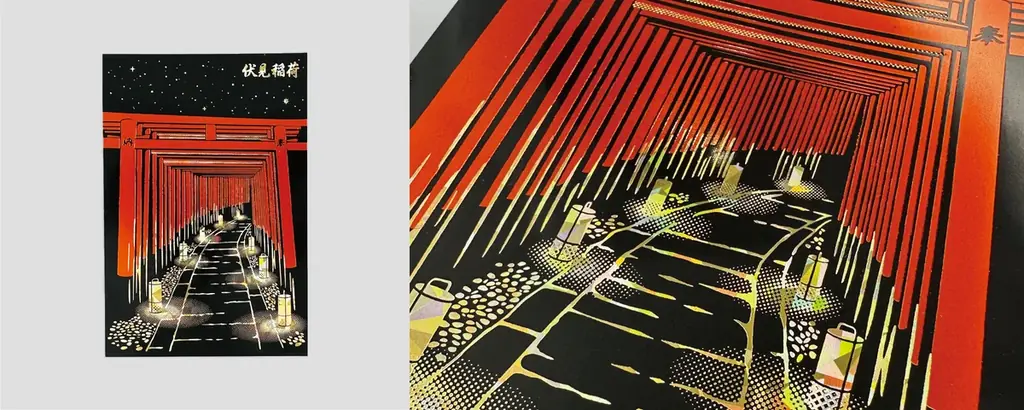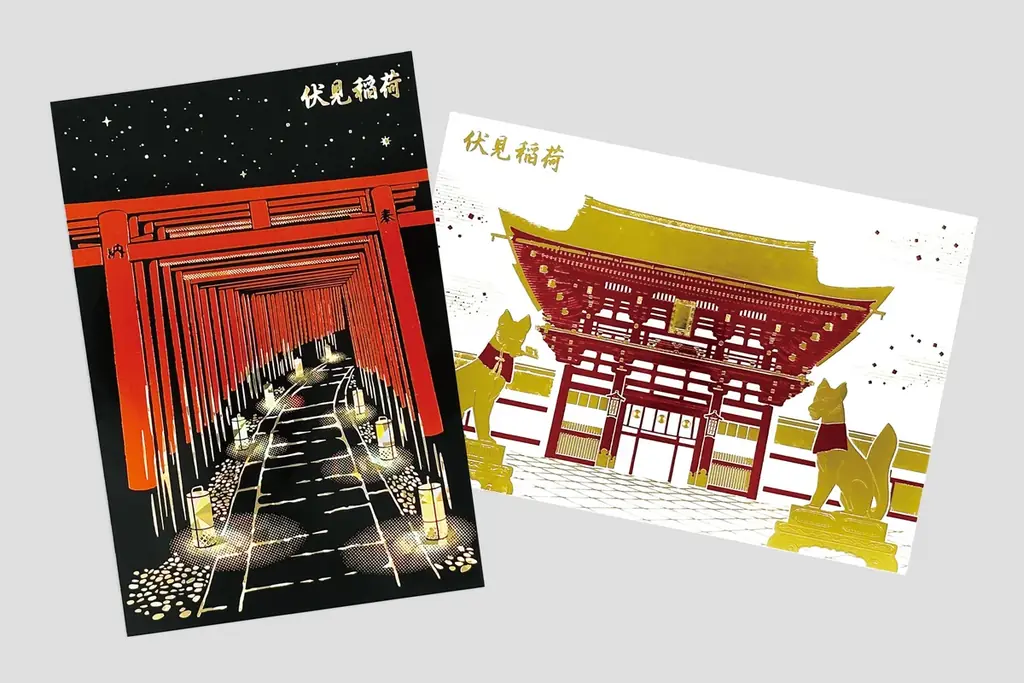 伏見稲荷の風景を箔で描く――ROKKAKUの新作ポストカード登場