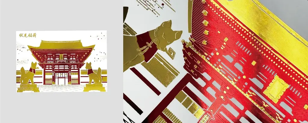 【新商品】箔押しブランド「ROKKAKU」より、全面箔押し加工の『日本名所シリーズ 伏見稲荷 箔押しポストカード 』が新登場! 画像 5