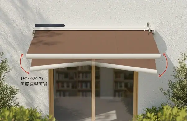 本製品は多様な設置環境に対応するために、複数の間口サイズと出巾を用意しています。取り付け後もキャンバスの角度を可変する仕様で、時間帯や季節による日射角の変化に対応できます。