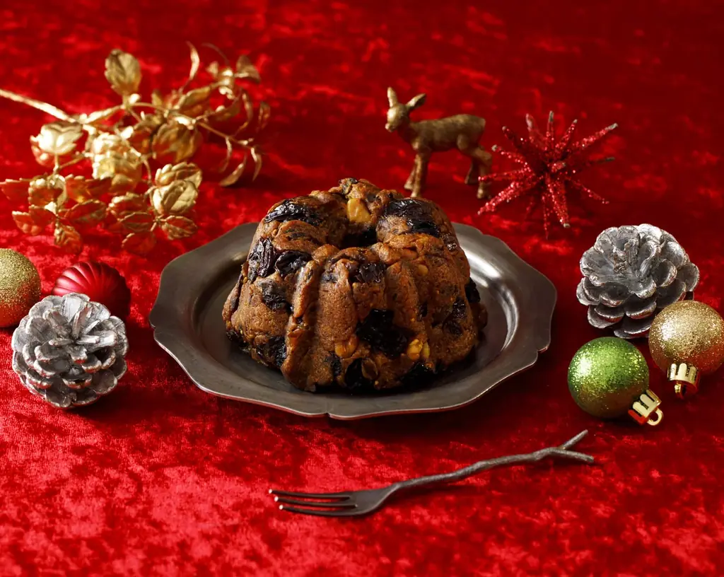 紀ノ国屋 クリスマスプディング:1,598円(税込)。ドライイチジク、ドライプルーン、レーズン、デーツ、ナッツを使ったイギリス伝統のクリスマス菓子です。※洋酒使用。