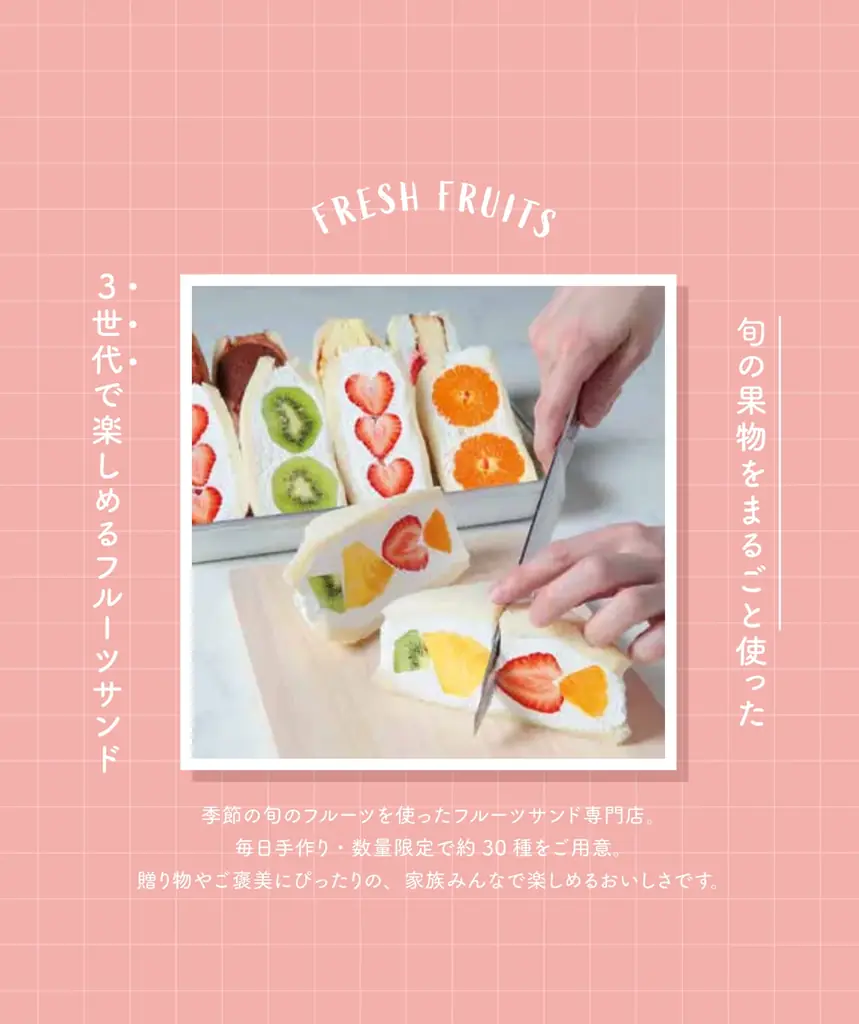| 主力商品 | 低糖質フルーツサンド(いちご、ミックス、フラワーみかん、チョコクリームいちご、季節限定品 等) |