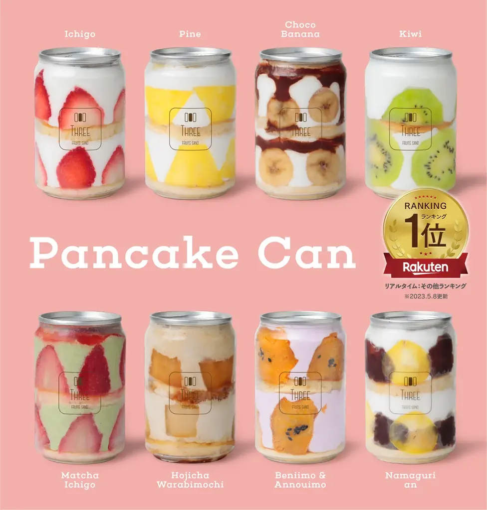 - 低糖質パンケーキ缶 全8種類:新鮮フルーツと低糖質クリームを活用した缶入り商品