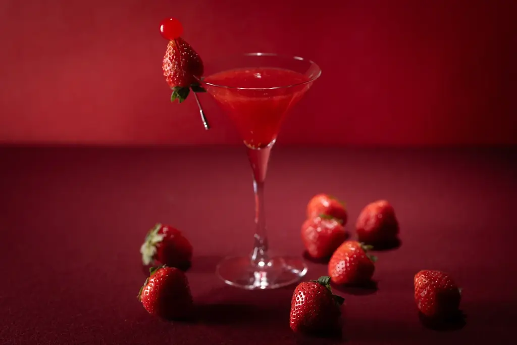 | 素材・特徴 | 真っ赤な苺をロゼシャンパーニュとブレンド。苺の果肉感と華やかな香りを持つエレガントなカクテル |