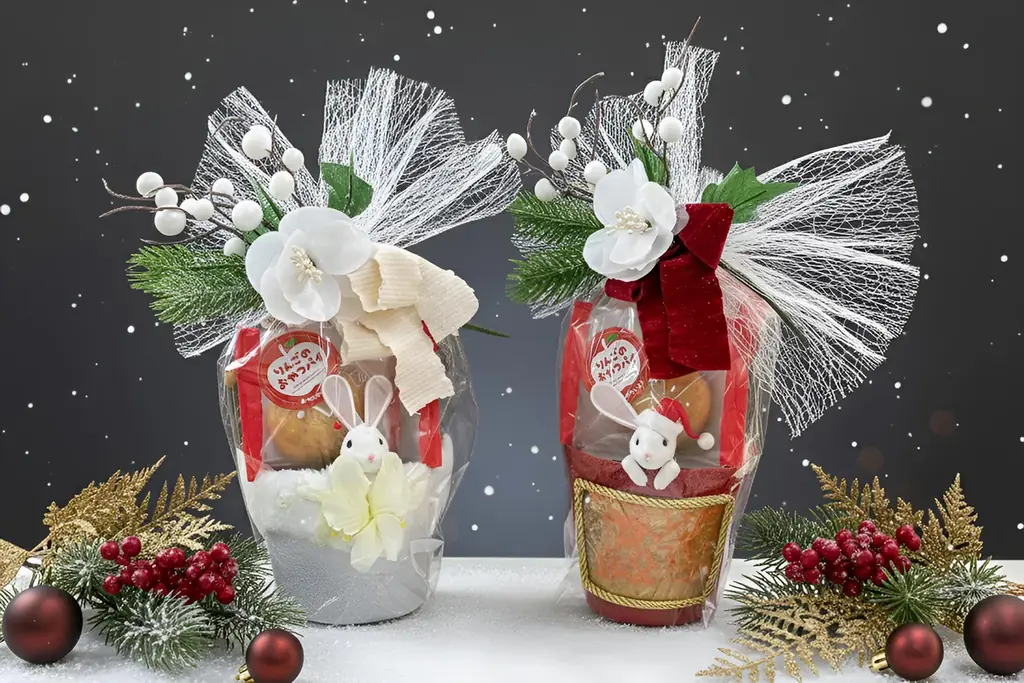 | スノーミー | ¥1,200 | りんごのおやつパイ・メープルマドレーヌ・花彩菓・おせんべい | うさぎ×雪の幻想的な世界観、カラーはスノーホワイトとエレガントレッドの2種 |