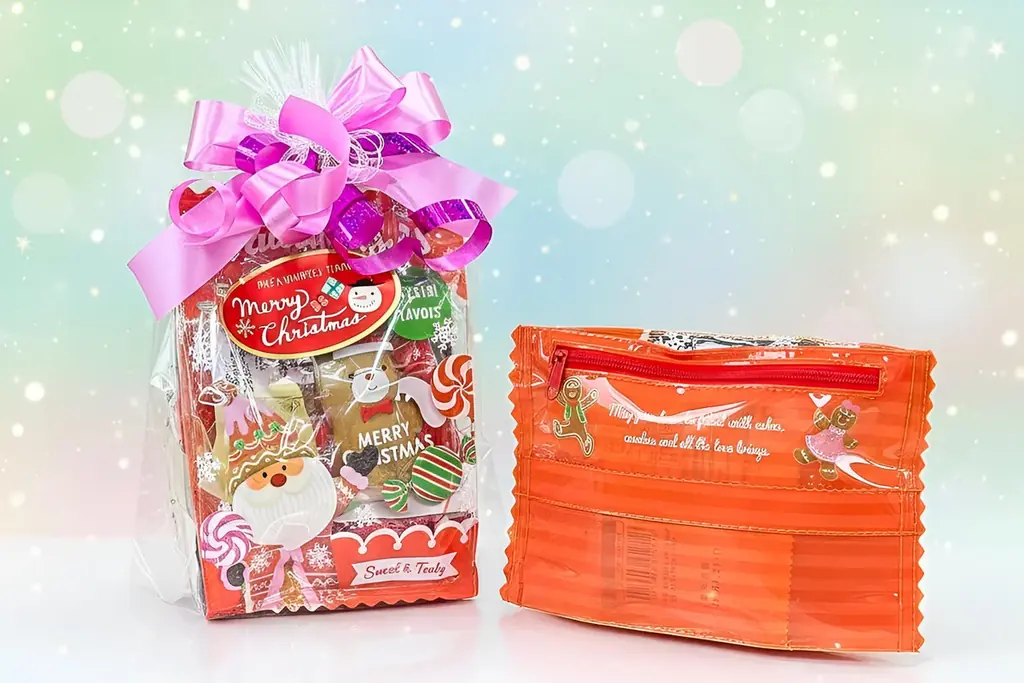 外観デザインは飾って楽しめること、贈られた後も使い続けられることを念頭に開発されています。たとえば巾着やポーチ、トート、フェルトのオブジェなどは食べ終わった後も小物入れやインテリアとして活用できる仕様です。すべて限定品で特別仕様という点が今回の特徴です。