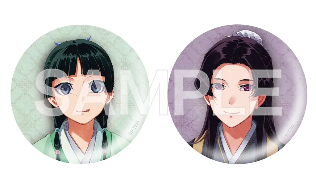- ② 缶バッジセット:¥1,100(税込)。キービジュアルを使用した缶バッジのセット。猫猫と壬氏の缶バッジがセットになっており、バッグや衣服のアクセントとして利用できます。
