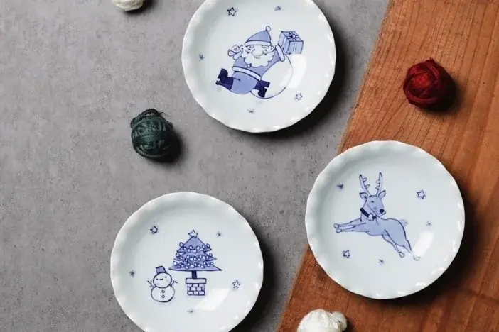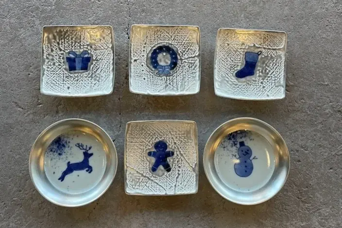 - 福珠窯による染付銀彩のクリスマスイメージ皿の限定販売やオーナメントなどの販売。