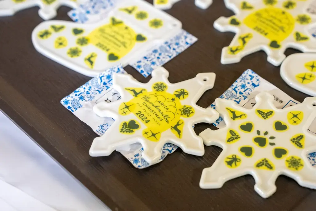 - 有田焼クリスマスオーナメントづくり:参加費2,000円、所要約45分〜1時間、実施時間は13:00〜、14:30〜、16:00〜の3回、各回定員10名。作品は後日焼成・配送で受け取り(協力:nextrad)。