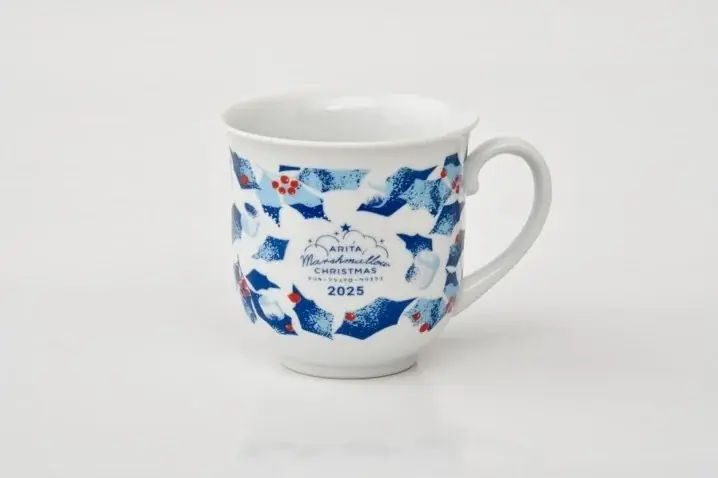 イベント限定の有田焼マグカップが2種類、数量限定で販売されます。1つは白と藍をイメージした伝統的なデザイン、もう1つは佐賀大学有田セラミック分野専攻の学生がデザインしたサンタを描いた可愛らしいバージョンです。販売は12月13日〜14日、20日〜21日の各スペシャルイベント期間に行われます。